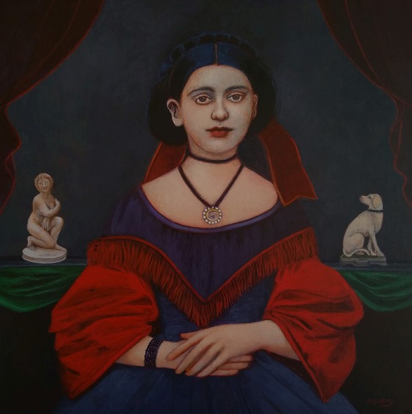 Title: 'Durga' acrylic painting on wood.